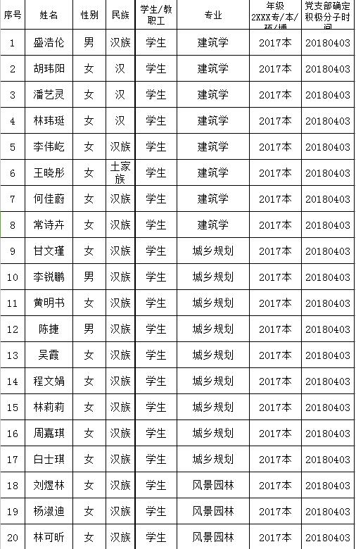 近期各团支部按照上级组织要求,公开、公平、公正的进行推优工作,经各团支部选举、团委讨论、学生党支部审核,现确定盛浩伦等38位同学为2017-2018学年第二学期入党积极分子,确定入党积极分子时间从2018年4月3日起算。