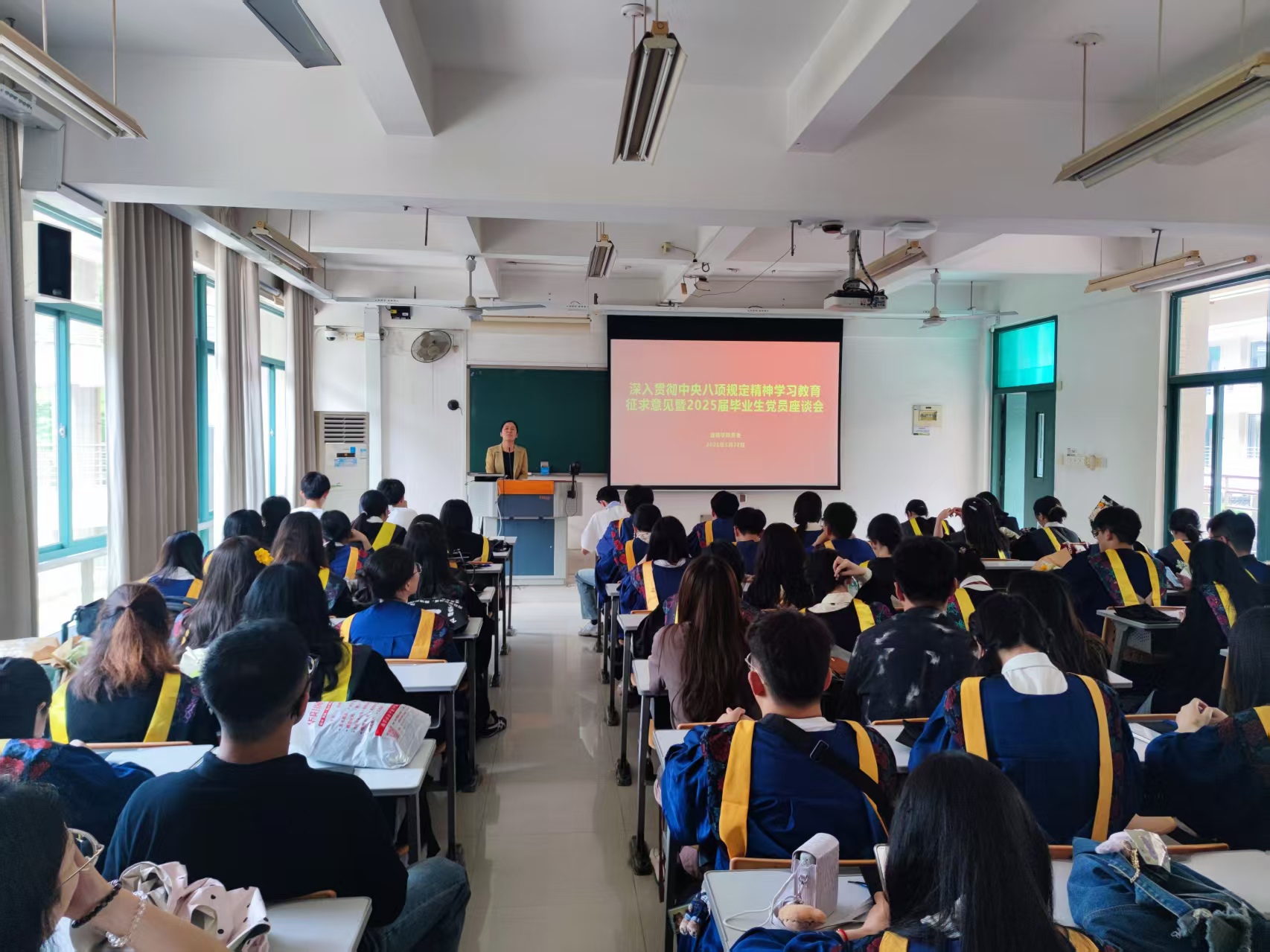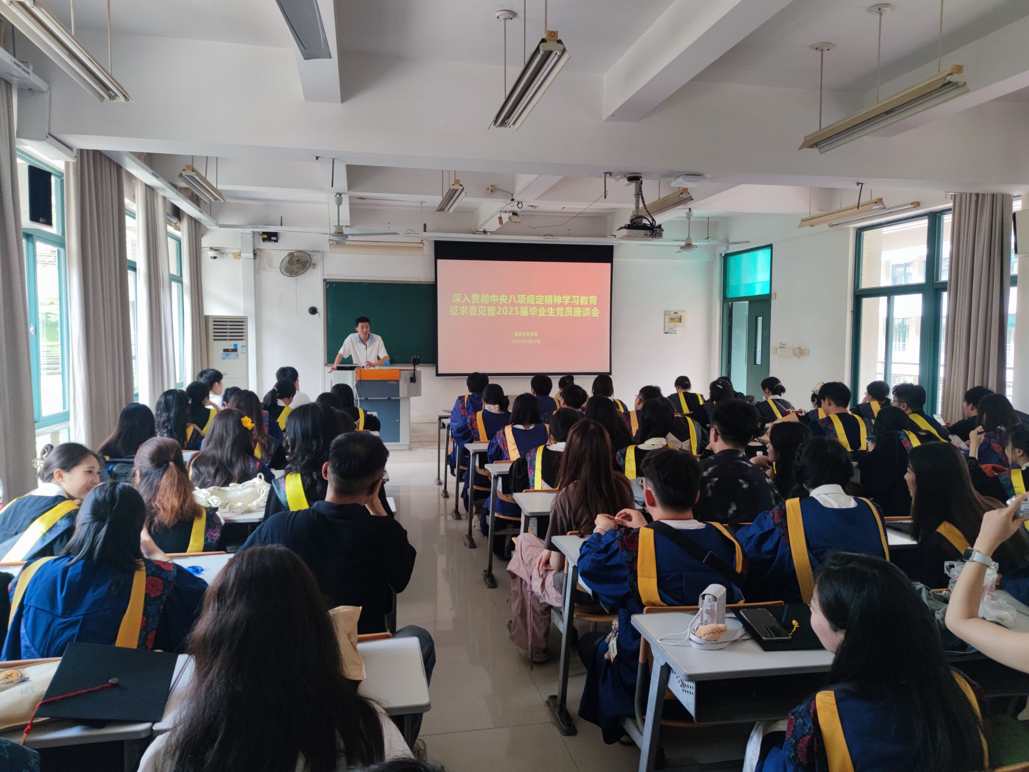 为进一步加强毕业生党员的党性修养和廉洁从业意识,强化身份意识与责任担当,以过硬政治品格和务实作风投身社会,同时深入了解2025届毕业生党员的思想动态,结合学院党委分层分类推进深入贯彻中央八项规定精神学习教育安排,5月22日上午,学院在综合教学楼D1-202召开毕业生党员座谈会,院党委书记侯艳茹,组织员、辅导员、全体毕业生党员参加。