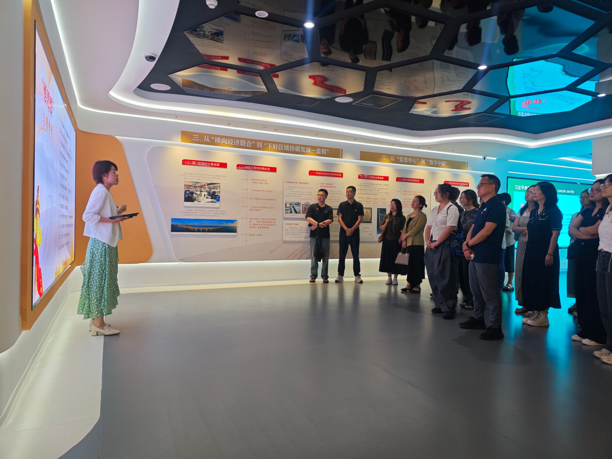 “学习之路”主题课堂体验式教学以《习近平新时代中国特色社会主义思想在厦门的孕育与实践》为题,由厦门市委党校张晨舟老师全程导学。大家共同走向“循足迹”“悟思想”“勇担当”“建新功”四个主题教室,通过图文版面、多媒体视频、沉浸式体验场景等方式,学习领会习近平同志作为领导者、开拓者、建设者在厦门经济特区工作期间创造的宝贵思想财富、精神财富和实践成果。