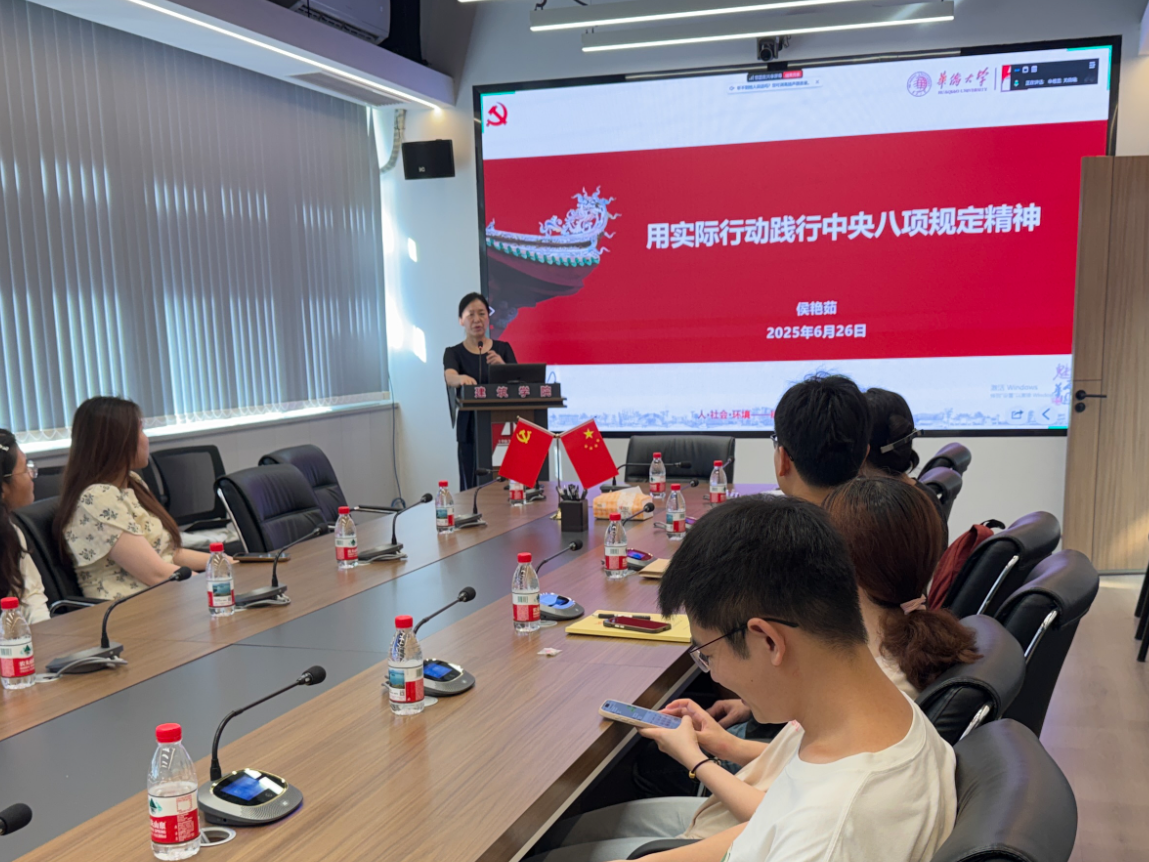 6月26日下午,院党委书记侯艳茹以“以实际行动践行中央八项规定精神”为题,为研究生第一党支部全体博士生党员讲授学习教育专题党课。