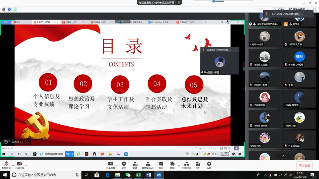 本次线上思想汇报会圆满结束,不仅让积极分子自身做到及时的反思和总结,也促进了支部成员间的交流学习和相互勉励。最后希望大家能够克服疫情期间的困难,向先进党员学习,努力争做先锋模范,砥砺奋进,诚心向党,以取更大的发展和进步,努力向党组织靠近。