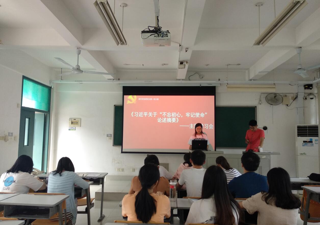 10月18日上午9:00,建筑学院研究生第一党支部在D2-301召开“不忘初心、牢记使命”主题学习会,与会人员共16人,会议由组织委员孙泽鑫主持。与会党员认真学习研讨《习近平关于“不忘初心、牢记使命”论述摘要》,党支部书记钱雨梦认为开展“不忘初心、牢记使命”主题教育就是要从实际出发,守初心、担使命、扎差距、抓落实,更好地用习近平新时代中国特色社会主义思想武装头脑、指导实践、推动工作。尹正同志谈到:“作为博士生党员,我们的初心就是对知识的渴求,对学术殿堂的向往,我们的使命就是用自己的思想知识和学习工作探讨科学技术的前沿,为改善人民生活与人民环境出一份力。”涂小锵同志认为广大党员同志应该学用结合,通过理论学习,结合自己所学,利用自己所长为人民谋幸福。他谈到长期在侨乡的调研,对此深有感触,面对华侨建筑的废弃与损坏,社区空间无人设计与规划,具有历史意义的古厝被高楼所替代,作为建筑学学子,可以组建团队到附近的村庄开始做起,从身边做起,为古厝所有者出谋划策,使村庄能够可持续发展,才能做到真正为人民谋福利。王群同志认为作为青年学生党员,不忘初心就是不要忘记我们的指责是为身边有困难的同学服务,同时,要时刻检视自己,对存在的缺点进行改正,真心做到践行初心。