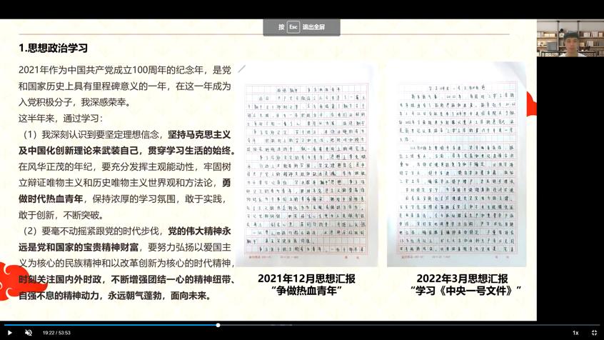 全体与会人员还共同学习了“2022年两会精神”等内容,陈美雯总结时表示,入党积极分子要不断学习党的基本知识、基本理论和方针政策,自觉接受党组织的培养和考察,用实际行动争取早日入党。