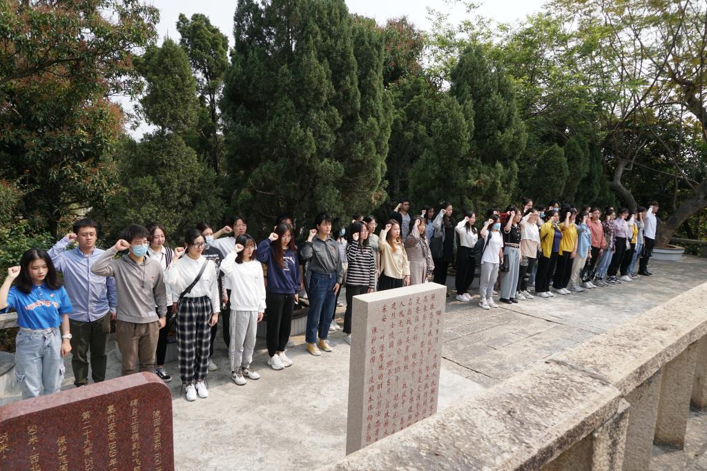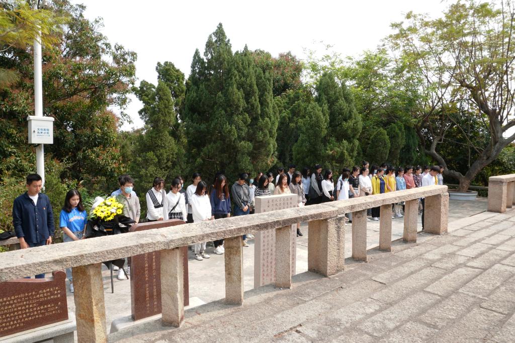 在本科生第三党支部书记林莉莉领誓下,全体党员郑重庄严地重温了入党誓词。最后,大家集体绕纪念碑一圈瞻仰,虔诚致敬、深情缅怀,表达对烈士们的崇高敬意。