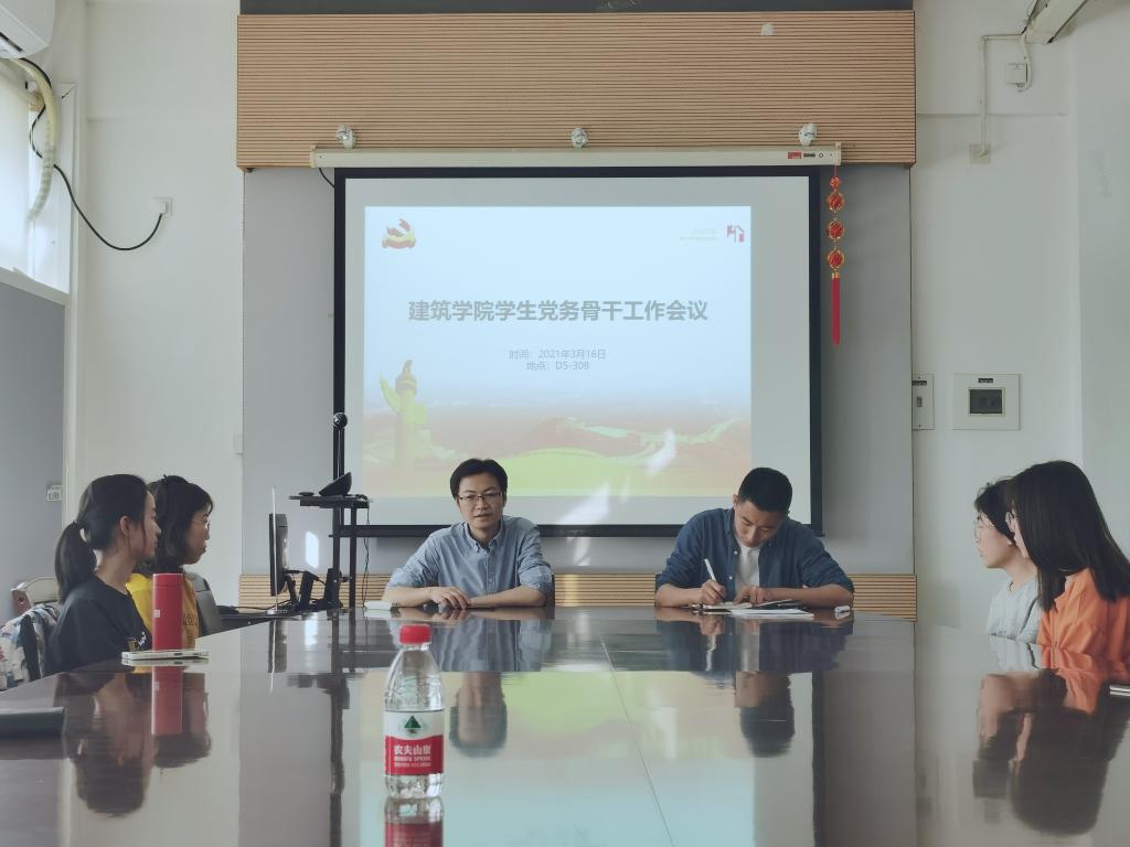 张磊向大家表达了感谢,并介绍了在学校工作几年来的成长历程。与会学生也一一自我介绍,叙述了任职以来的工作心得体会。随后,会议传达了近期学生党建相关工作,并就本学期主要工作内容进行了布置和讨论。一是结合“三会一课”“主题党日”等全面推进党史学习教育,深入开展庆祝建党百年相关活动;二是在发展党员指标增加的条件下,严把发展党员“入口关”,扎实做好入党申请人和入党积极分子培养发展工作;三是用好用活“学习强国”平台,持续完善党员理论学习日常监督帮扶机制。