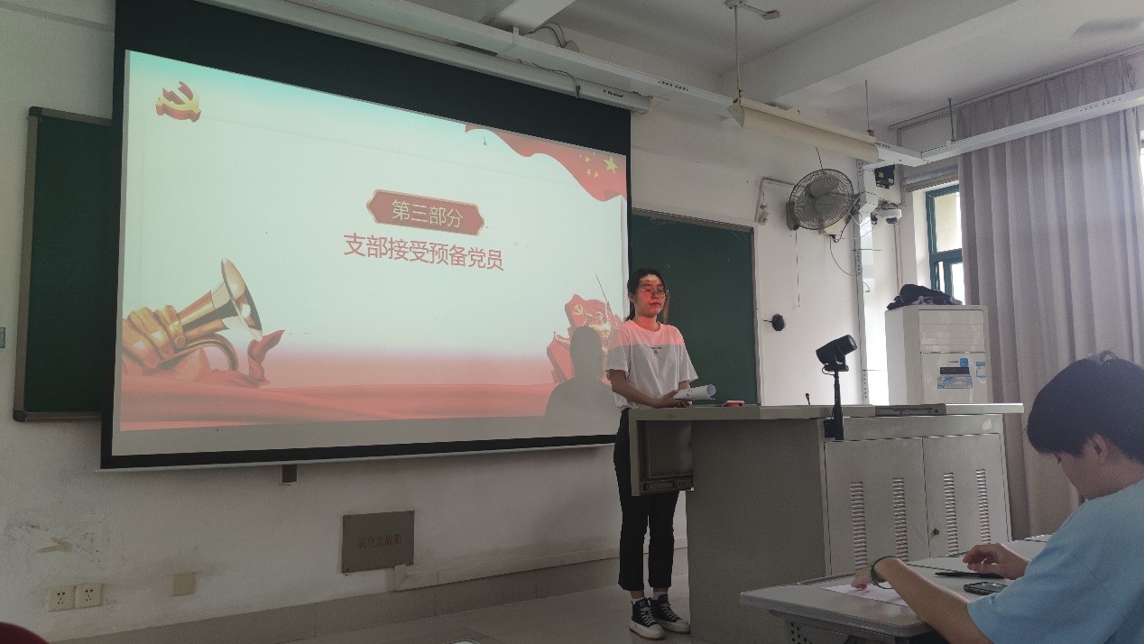 本次讨论接收的2名同志,自4月份确定发展对象后,受疫情影响未能及时返校。会上,2人宣读《入党志愿书》,汇报自己对党的认识、入党动机、本人履历、现实表现、家庭主要成员和主要社会关系情况,以及需要向党组织说明的问题。