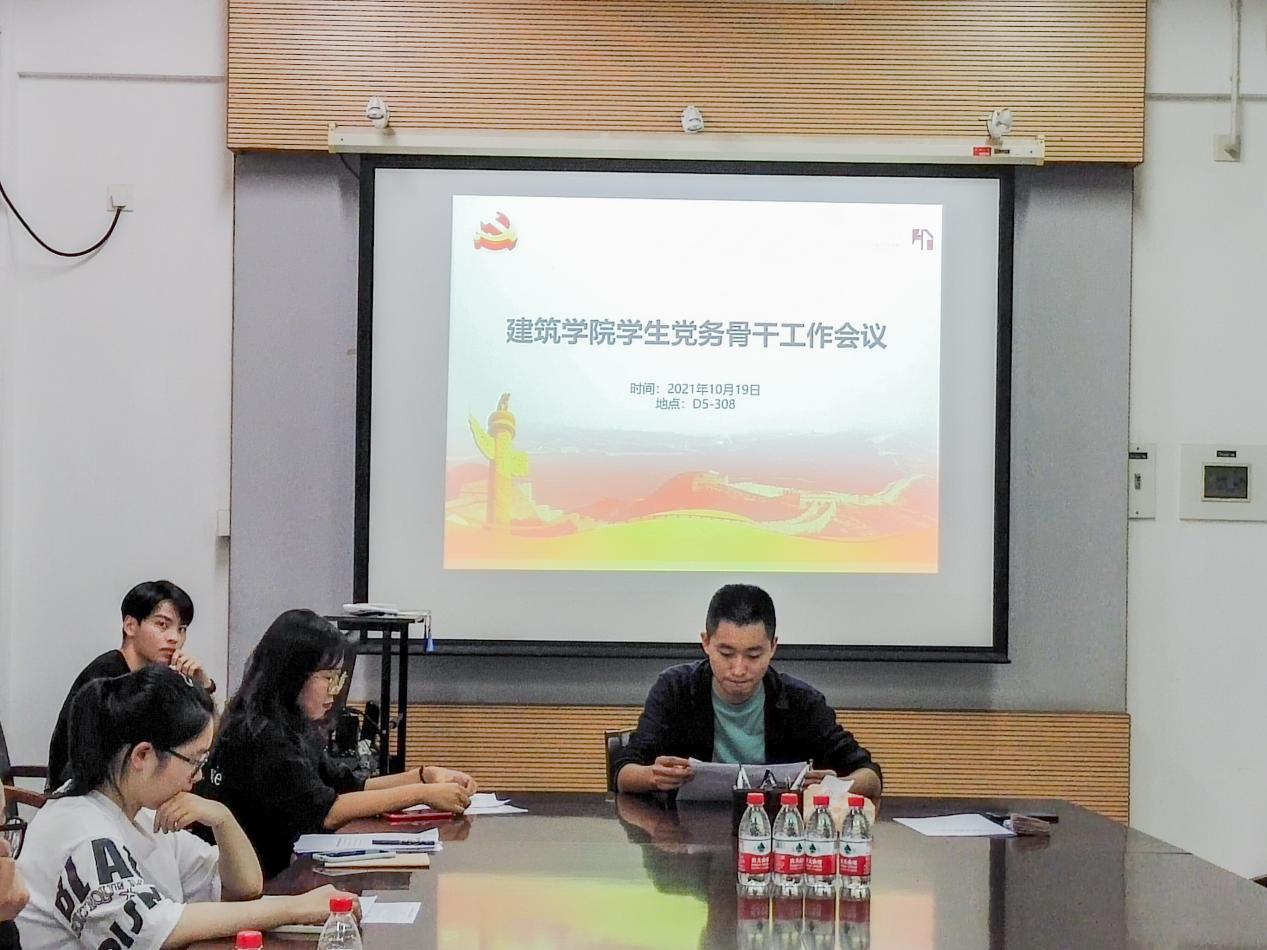 会上,学生党建办主任穆杰同志就本学期入党积极分子接收、预备党员转正、发展党员等重要工作的时间节点、会议流程、注意事项等内容进行详细讲解,结合档案填写的规范表述和要求。张磊老师向与会人员就过去入党积极分子的培养考察工作中出现的问题进行点评,他强调,希望各支委在近期的工作中引起注意,并且提醒党支部在做好考察入党积极分子环节时不要囿于形式,浮于表面,不能将考察停留于绩点,要切实了解到积极分子对党的真实感受以及入党动机。