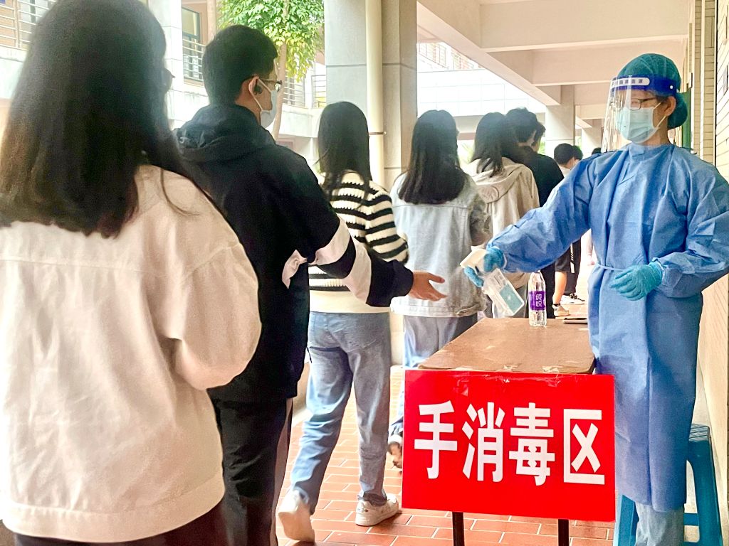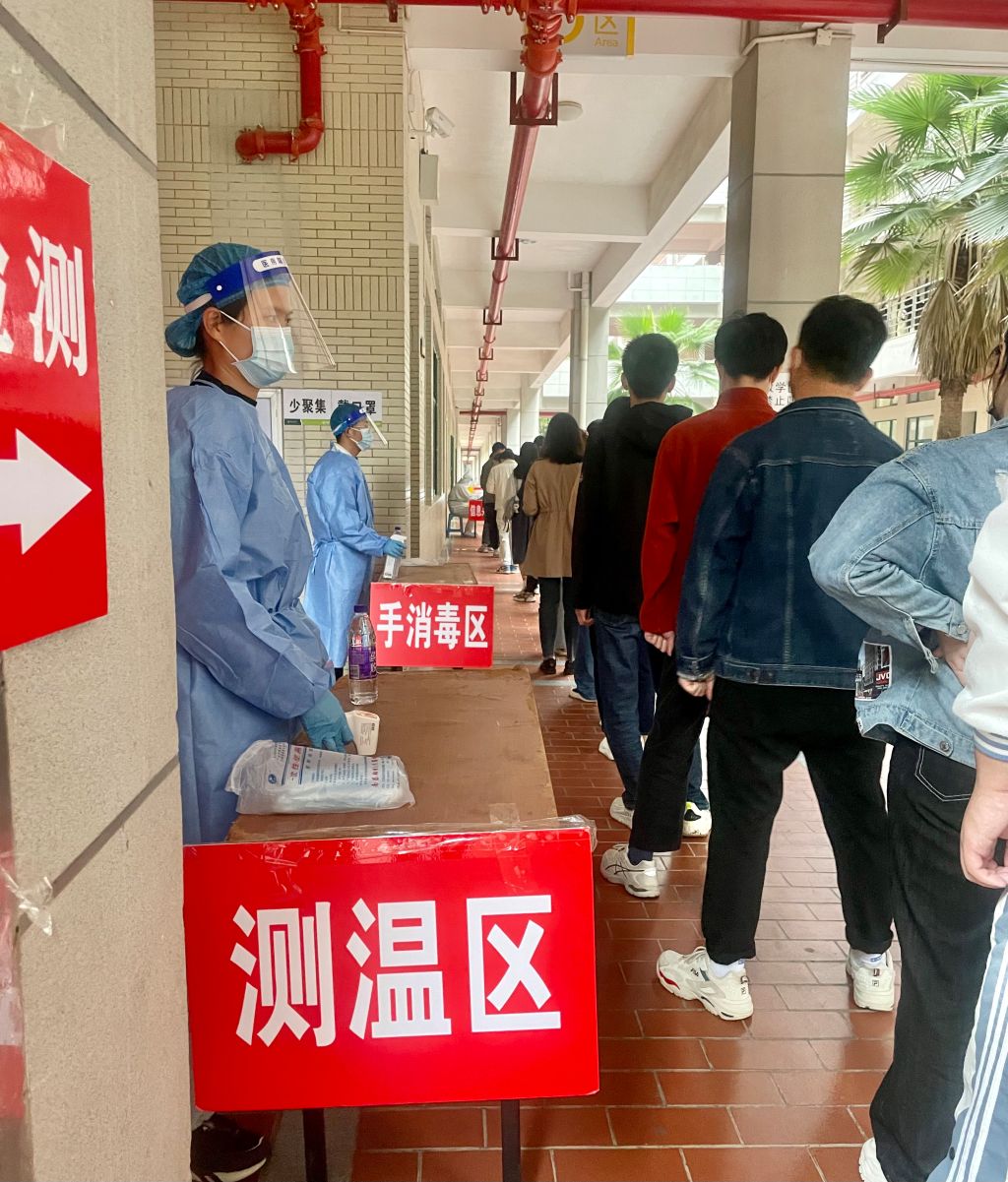 在学院半数党员因为各种原因不能入校的情况下,学院党委委员、教工第二党支部书记刘仁芳,学院党委委员、团委书记、学工办主任谭磊,学院党政办副主任柯晓蕾,教学秘书、教工第二党支部宣传委员黄雪琼,教工第一党支部预备党员张家浩,辅导员张亚新,教工入党积极分子王小玥等纷纷报名参加。其中,3月22日下午,接到组织部工作安排后,柯晓蕾、黄雪琼赶赴核酸检测现场,严格按照工作程序,承担手部消杀环节、体温测量等工作。