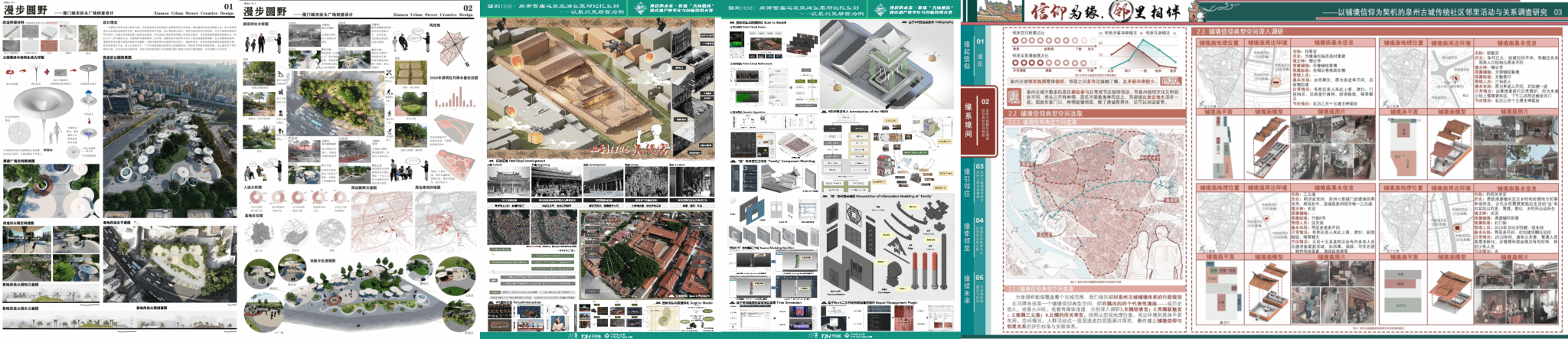 在五年建筑学的求学生涯中,王元玲始终保持着对专业的专注与热爱,她深谙“知行合一”的道理,积极参与各类专业竞赛与科研活动,不断拓宽专业视野、提升设计能力。她立足专业,围绕国家需要、人民向往展开设计,参与城市微空间设计,从小空间小设计出发,提升城市空间品质与人民生活幸福感,获得厦门城市微空间创意大赛市级十佳设计作品、优胜作品;以泉州天后宫为例,将建筑数字化,为建筑遗产保护提供方法,助力建筑遗产“延年益寿”,实现 “永续留存”,获得建成遗产数字化与创新应用大赛二等奖;调研以泉州铺境庙为代表的铺境信仰空间,并为其提出了可持续发展方向,为现代社区拉近邻里关系、提高社区凝聚力提出了宝贵建议,获得城市可持续调研报告国际竞赛提名奖。王元玲从不满足于课堂的边界,而是主动走向真实场景,用脚步丈量城市、用图纸思考空间,每一次实践成果的背后,都是她夜以继日的思考与表达,更是党员精神内化于心、外化于行的体现。