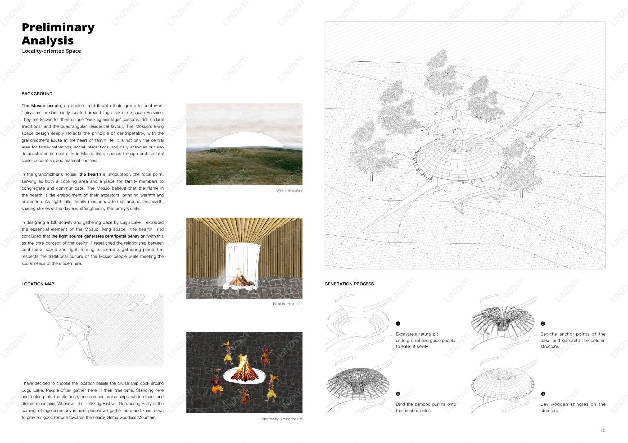 大五在退化建筑的实习经历,也让其对行业有了更深入地了解。前阵,微信爆款文章《永利yl23411集团学姐怒拿八个OFFER,米兰理工大满贯!更有KADK、港城、NUS、曼大等名校录取!》揭开了林芷依的申硕之路。说到这,林芷依非常乐于提起自己的作品集,并希望分享给还在热爱建筑学的我们。她最青睐的是耗时仅一个月完成的终章项目。项目缘起于她对摩梭人文化的好奇探索,而后决定以此为契机进行创作。该项目选址泸沽湖旁,主体是一座可容纳当地民俗活动的亭子,聚焦以竹子为建构材料,探索打造优雅结构,塑造摩梭文化中极具代表性的向心空间。