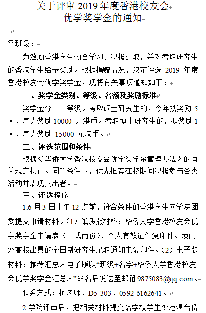 上一条:关于评审2018-2019学年香港泉州慈善促进总会香港学生助学金的通知