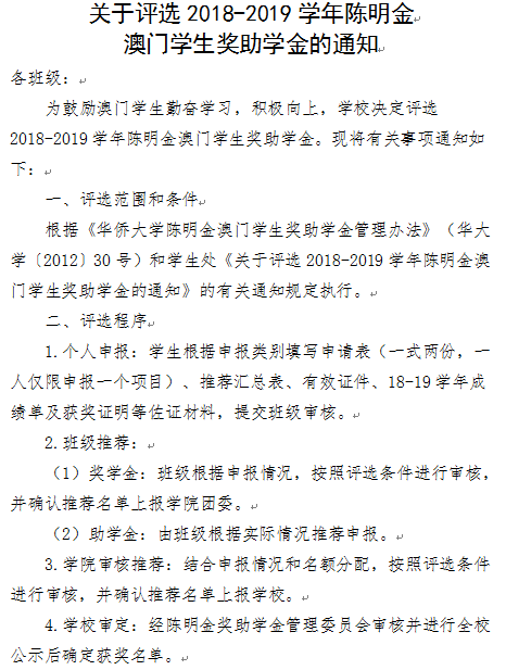 上一条:关于评选2018-2019学年黄仲咸华侨华人学生及海外留学生奖助学金的通知