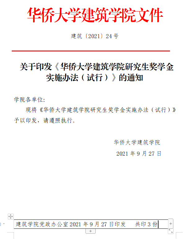 第十二条 若申请奖学金的人数多于学校下拨的名额,则按照《永利yl23411集团建筑学院研究生奖学金评分细则》(附后)进行积分排序,确定获奖等级。