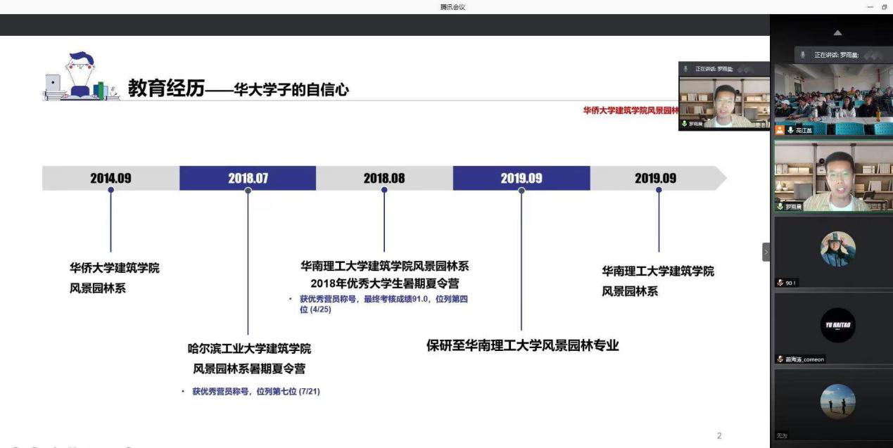 交流会伊始,薛佳薇副院长首先对毕业生们的参与表示赞许与感谢,毕业生们的参与体现出他们对于母校深厚的情感,相信他们在毕业后更有体会。接着由刘任芳老师致辞,表明本次交流会的意义在于利用华大yl23411永利集团这一平台,促进风景园林专业不同年级间以及在校生与优秀校友之间的交流,以达到为各个年级的同学们解答疑惑,明确学习目标的目的,同时展示优秀毕业生的风采,为学弟学妹们树立榜样的同时,让毕业生们再次感受母校的温暖,也希望他们为母校专业教育发展提出宝贵建议。最后谭磊老师代表学院团委再次欢迎各位学长学姐的到来,感谢他们宝贵的经验分享,并提醒仍在校就读的同学们从中学习借鉴。