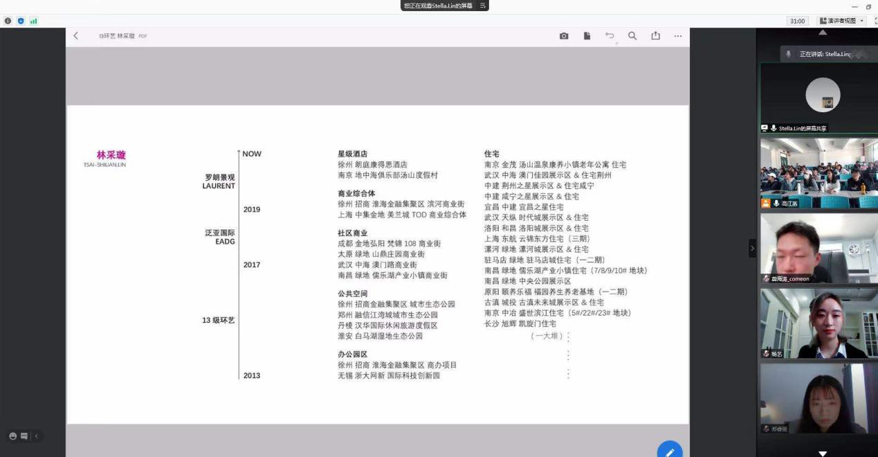 为解答同学们对未来学习与职业规划的疑惑,满足同学们的求知心理,4月10号下午,yl23411永利集团开展桑梓匠人协同学堂——“我与学长学姐面对面”风景园林系经验交流会。学院副院长薛佳薇,风景园林系副主任刘仁芳,团委书记、学工办主任谭磊出席本次交流会,并邀请到往届的优秀毕业生为仍在校就读的学弟学妹们分享经验,相互交流。交流会同时在线上进行,由高江菡老师主持。