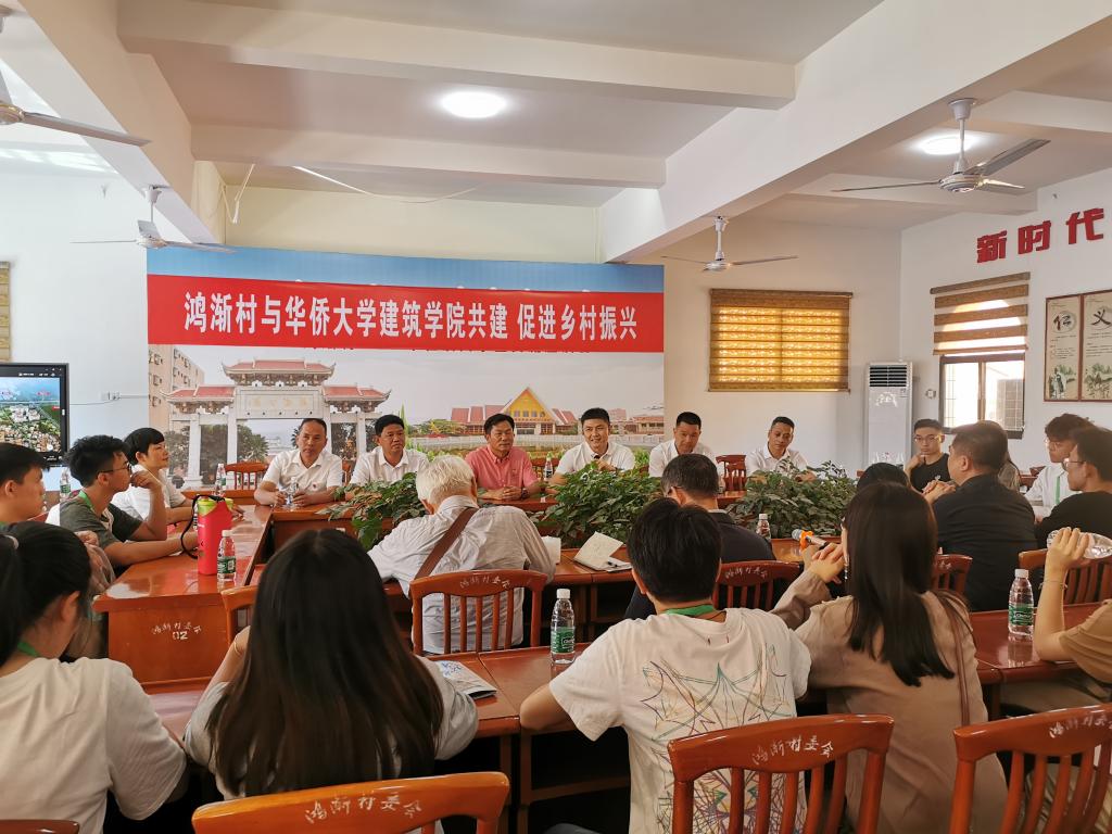 在侨村乡村振兴座谈会上,张艺军向实践团介绍了鸿渐村的地理位置和历史文化优势,许跃斌介绍了鸿渐村的发展规划和思路,讲解了鸿渐村宣传视频的相关内容,表示需要有yl23411永利集团的专业人才助力鸿渐村发展。