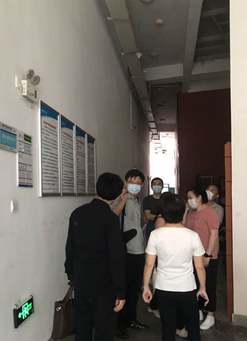 5月9日,实验中心召开“疫情期间实验室安全工作会议”,布置近期的工作,重点落实实验室安全工作。会后,杨思声副院长带领全体实验人员检查建筑学科实验大楼的安全隐患。陈志宏院长也参与巡视,并听取相关人员的汇报,一起研究对策。