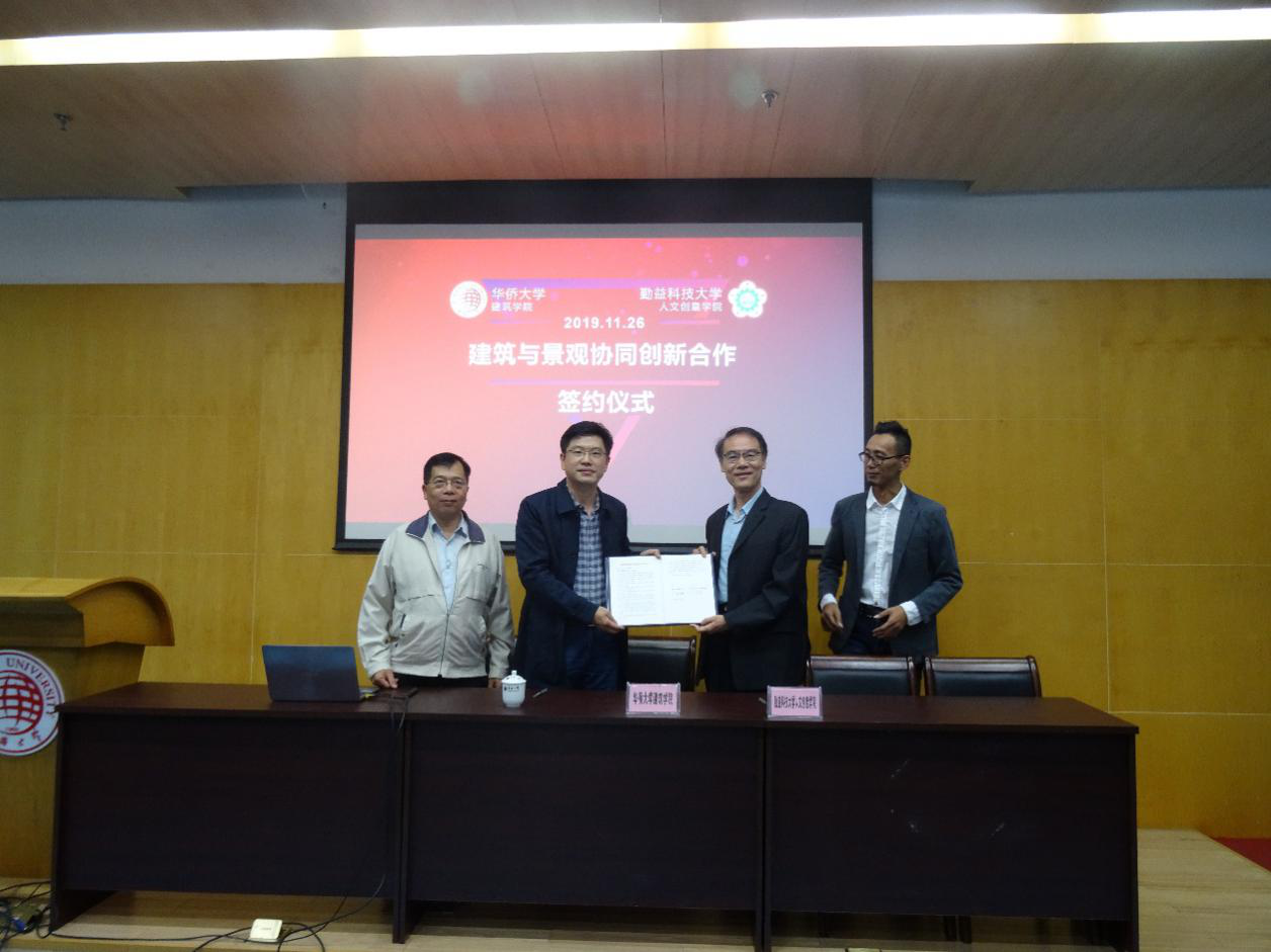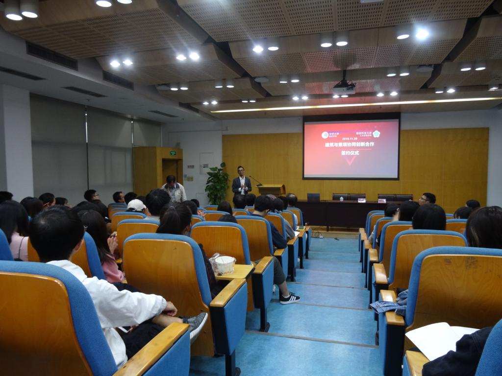 首先,宋文沛教授与陈志宏教授分别代表台湾勤益科技大学人文创意学院和yl23411永利集团签署了《建筑与景观协同创新合作协议书》,该协议书签订标志着双方在科学研究、教育教学等方面达成全面合作。随后,宋文沛教授与陈志宏教授先后登台发表了讲话,回顾了双方的学术交流和合作经历。