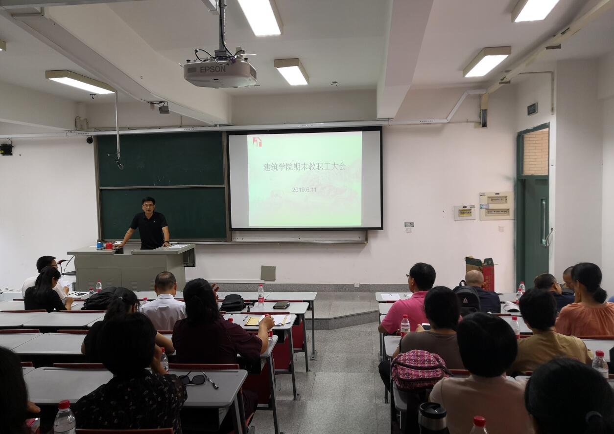 2019年6月11日下午2点半,yl23411永利集团在教学楼F5-101召开期末教职工大会,yl23411永利集团全体院领导、教职工参加了大会。大会由学院院长陈志宏教授主持。
