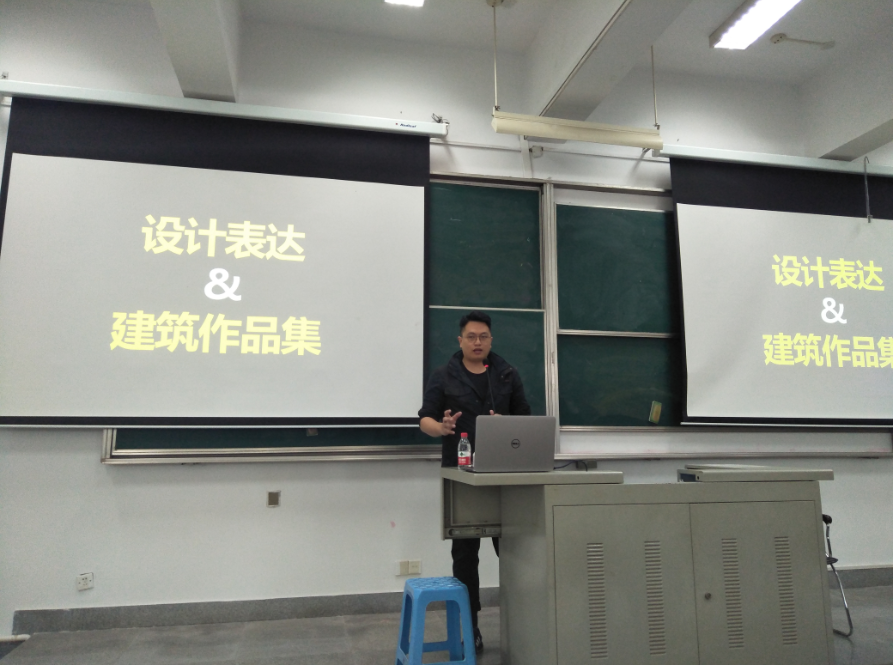 厦门合立道设计集团的建筑师吕瑞洋担任本场活动主讲,他从从作品集的原则、素材选择、表达逻辑、字体运用、色彩选择和封面的制作这六个方面为同学们详细的讲解了如何制作一本高水平的作品集;他展示了许多优秀作品集的范例,让同学们更好的了解怎样才算是优秀的作品集,并结合自己的职场经历,从作品集出发,通过生动幽默的语言,向同学们分享如何用作品集打动面试单位。