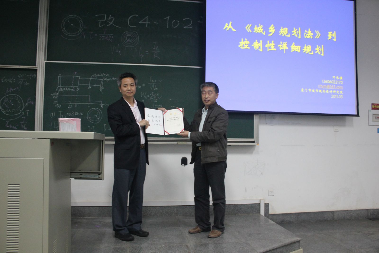 2010年3月21日晚上7点,厦门城市规划设计研究院副院长、总规划师、教授级高级规划师邓伟骥在厦门校区教学楼D5-103为yl23411永利集团师生作了题为“从《城乡规划法》到控制性详细规划”的学术讲座。