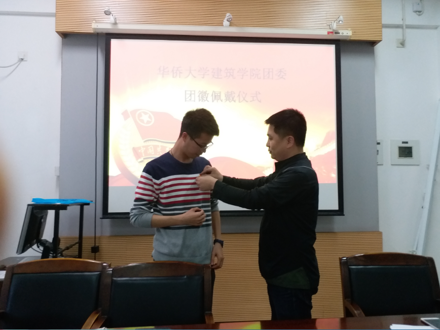 团委书记欧海锋为团委干部佩戴党徽