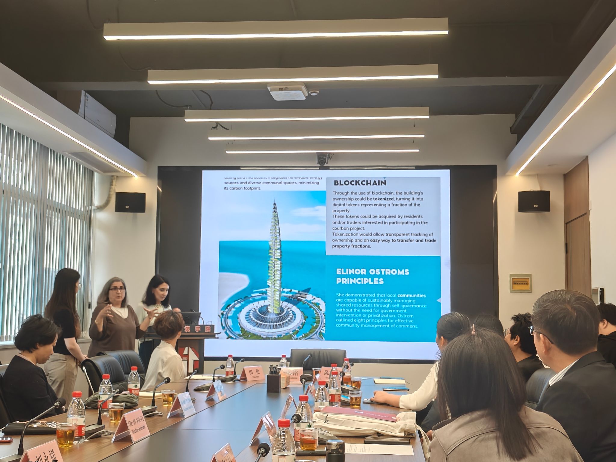 罗萨教授分享了在世界各地的垂直花园城市等创新设计,展示了仿生超高层建筑的应用前景。梅赛德斯副教授也分享了对仿生超高层建筑权属关系、社区管理等议题的前沿思考。薛佳薇副院长针对仿生高层建筑的防火议题进行交流探讨。陈志宏院长对两位教授的精彩分享予以高度赞扬,认为仿生设计突破了超高层建筑的已有耗能模式,是高密度城市建筑发展的重要探索方向,也鼓励yl23411永利集团的学生思考并参与到仿生建筑的设计创新。双方在联合教学、科研合作等方面进行了深入探讨,并初步达成合作意向。