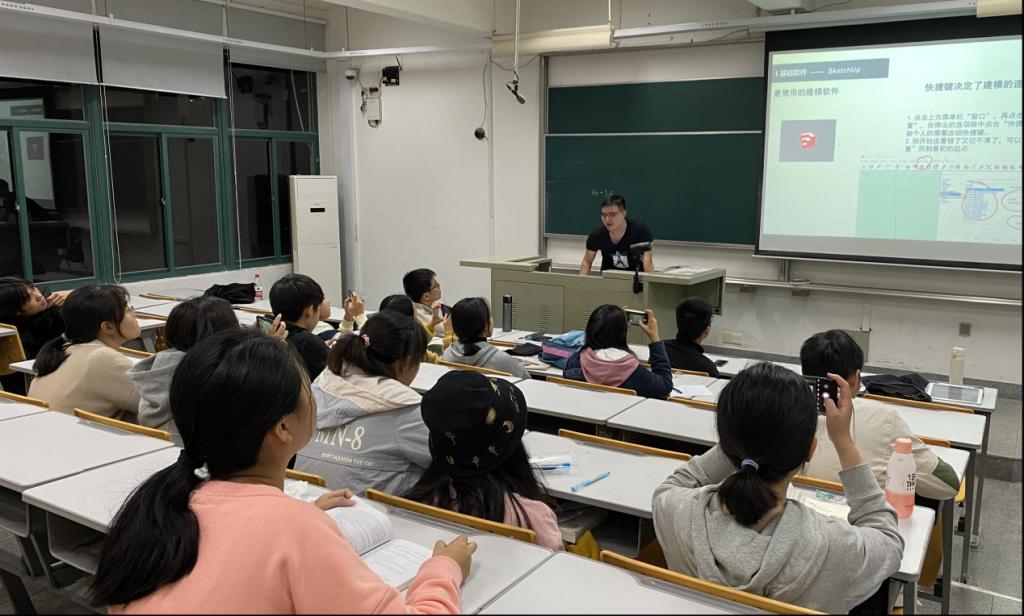 随后,建筑学研究生叶盛捷学长在对建筑学的学习课程进行了简单介绍之后,还详细讲解了以后大家可能会使用到的各类专业软件,并结合实际案例进行了详细分析,从基础到高阶,涵盖了专业所有可能会使用到的软件,供大家参考和选择。