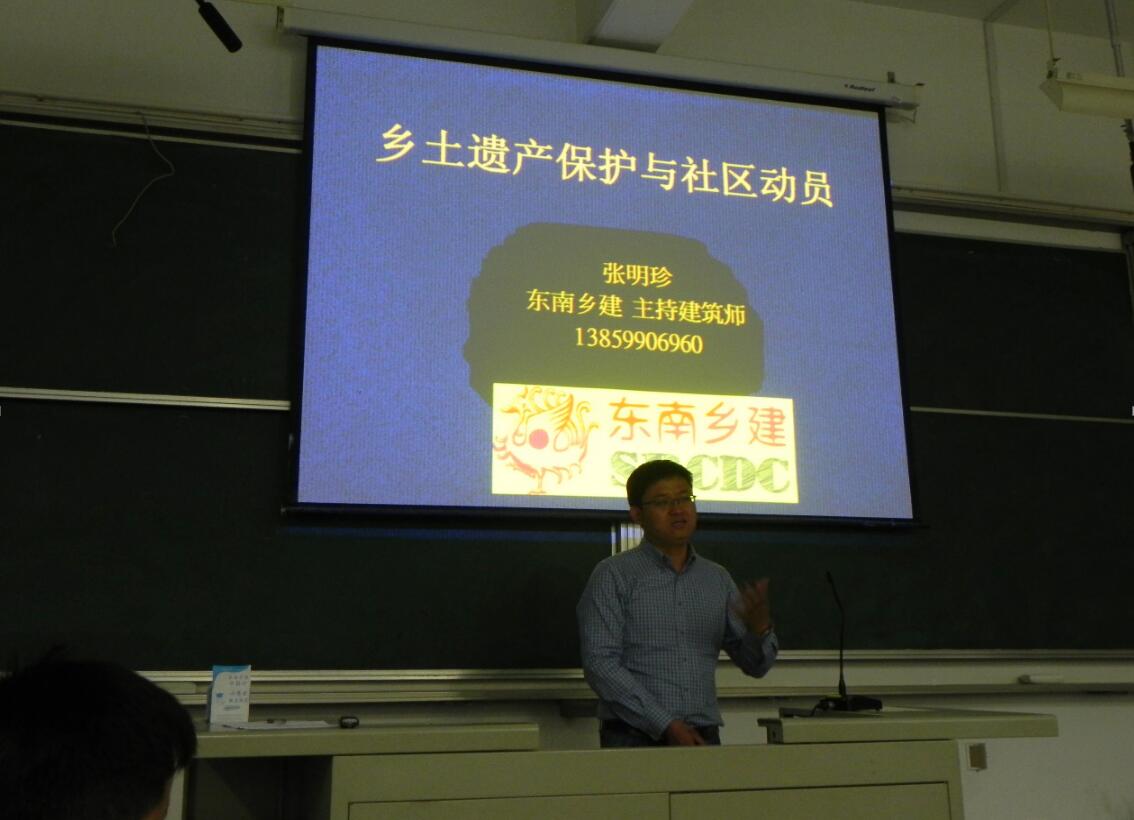 3月28日晚7::30,九七华夏设计机构主持建筑师洪金聪和东南乡建创始人张明珍应邀来到我校yl23411永利集团,分别作了题为“乡建恨晚之贵州中关村的落地实践”和“乡土遗产保护与社区动员”的学术讲座,yl23411永利集团院长龙元教授及yl23411永利集团百余名师生参加了讲座。