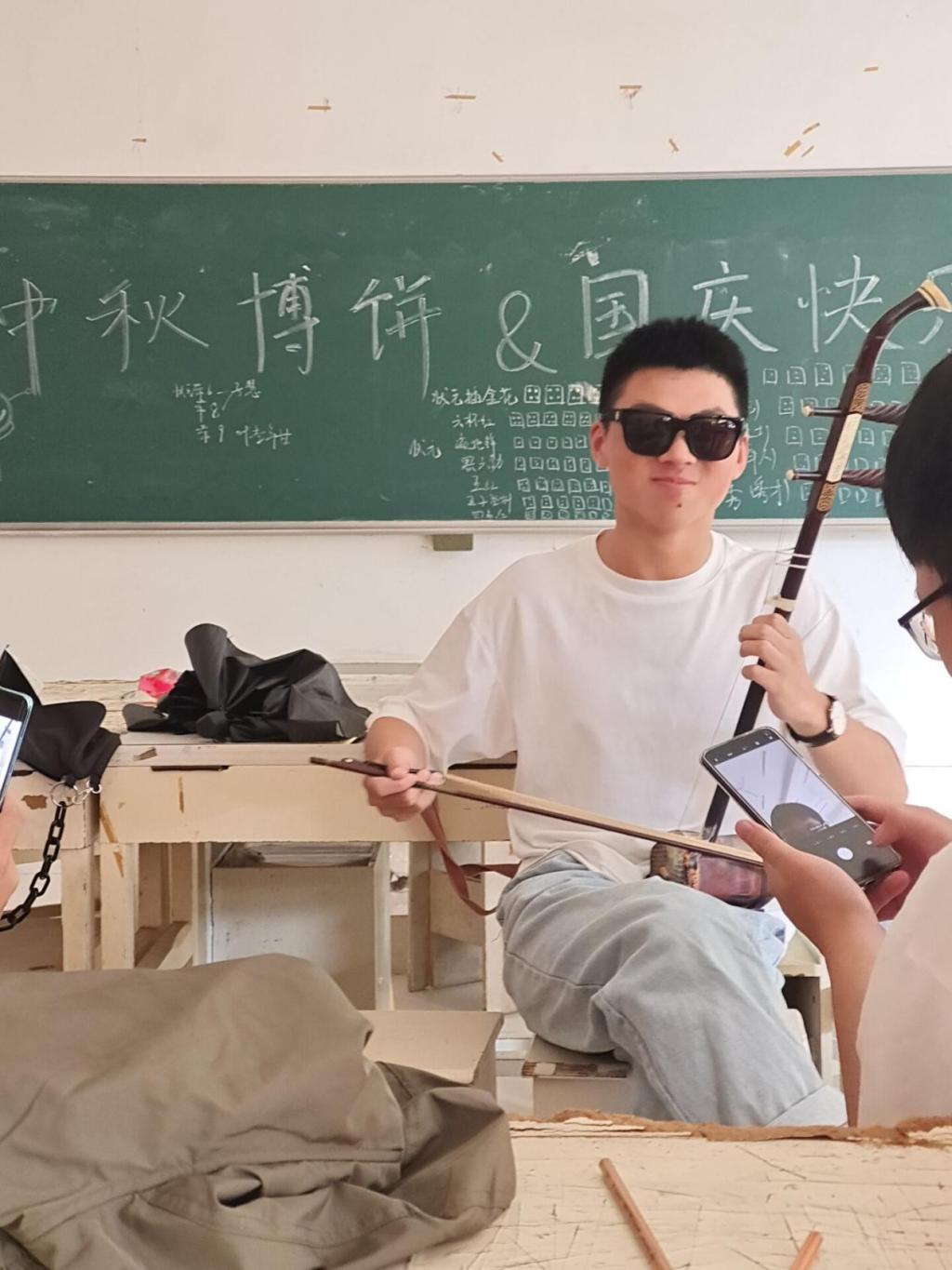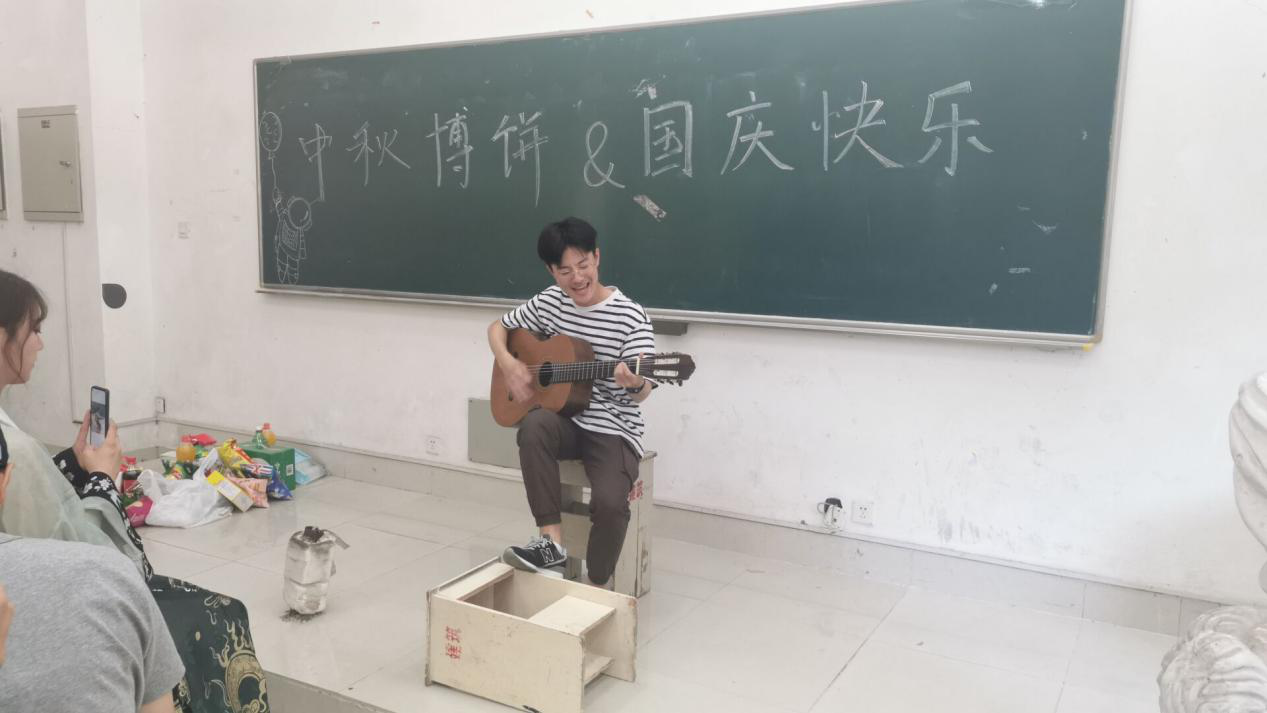 随后,多才多艺的新生们表演了多项精彩的节目,其中既有吉他弹唱,又有二胡演奏,让此次活动渐入佳境。