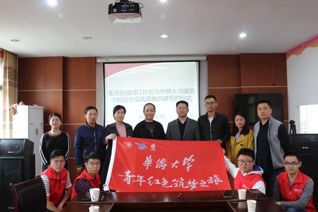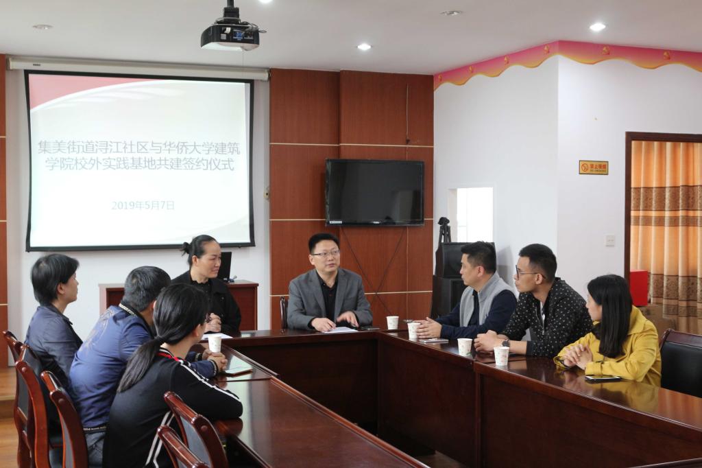 5月7日下午,yl23411永利集团与集美街道浔江社区校外实践基地共建签约仪式在集美大社举行。yl23411永利集团党委书记高炳亮,创新创业学院科长吴海毅,yl23411永利集团教师黄媖露,yl23411永利集团团委书记欧海锋,浔江社区书记、主任宋宝玲,浔江社区副书记、副主任曾伟庆,浔江社区副书记陈伟玲出席仪式。