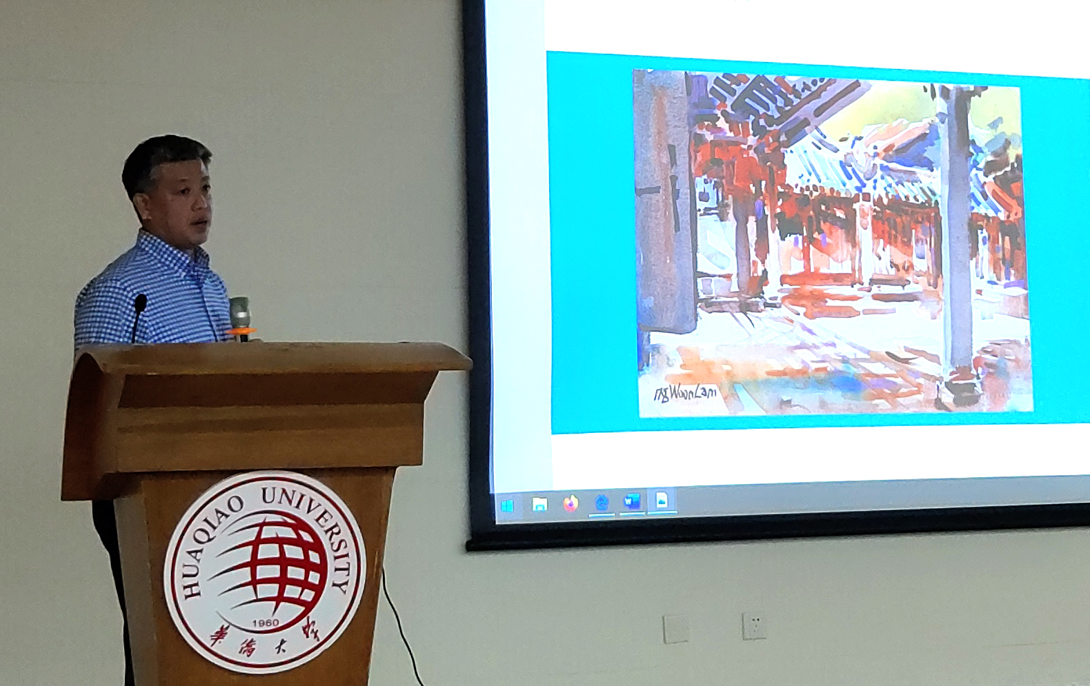2019年11月1日晚,新加坡南洋理工大学艺术设计与媒体学院副教授、美国国家水彩画会署名会员(NWS)、美国水彩画会署名会员(AWS)及海豚院士(AWS-DF)黄运南来到永利yl23411集团厦门校区王源兴国际会议中心,做客yl23411永利集团建筑讲坛,作了题为“华侨建筑写生——形与色的水彩表现”的精彩讲座。讲座由yl23411永利集团博士研究生涂小锵主持,近两百名师生一起聆听了讲座。