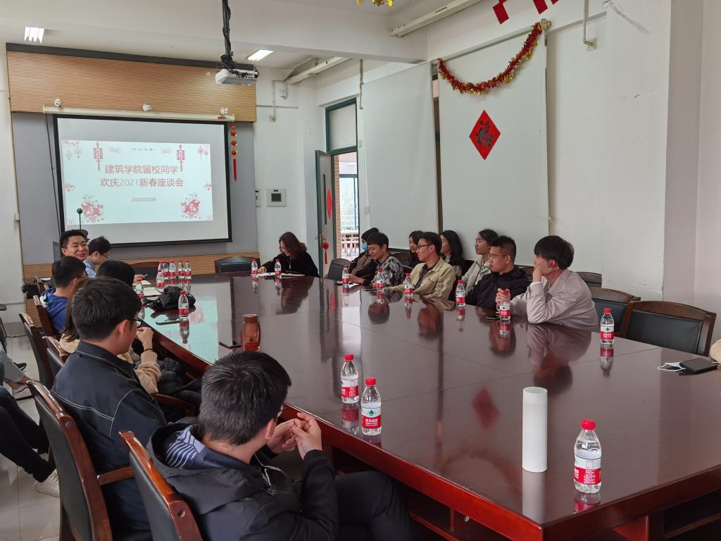 当天,学院还在D5-103会议室开展2021年春节留校学生座谈会。老师们与学生围坐一桌,倾听同学们的生活学习和未来规划情况以及对学校的建议。会后,老师们为学生们送上春节慰问礼包、年夜饭餐券及手绘明信片并和大家一同观看影片《我和我的家乡》贺岁。