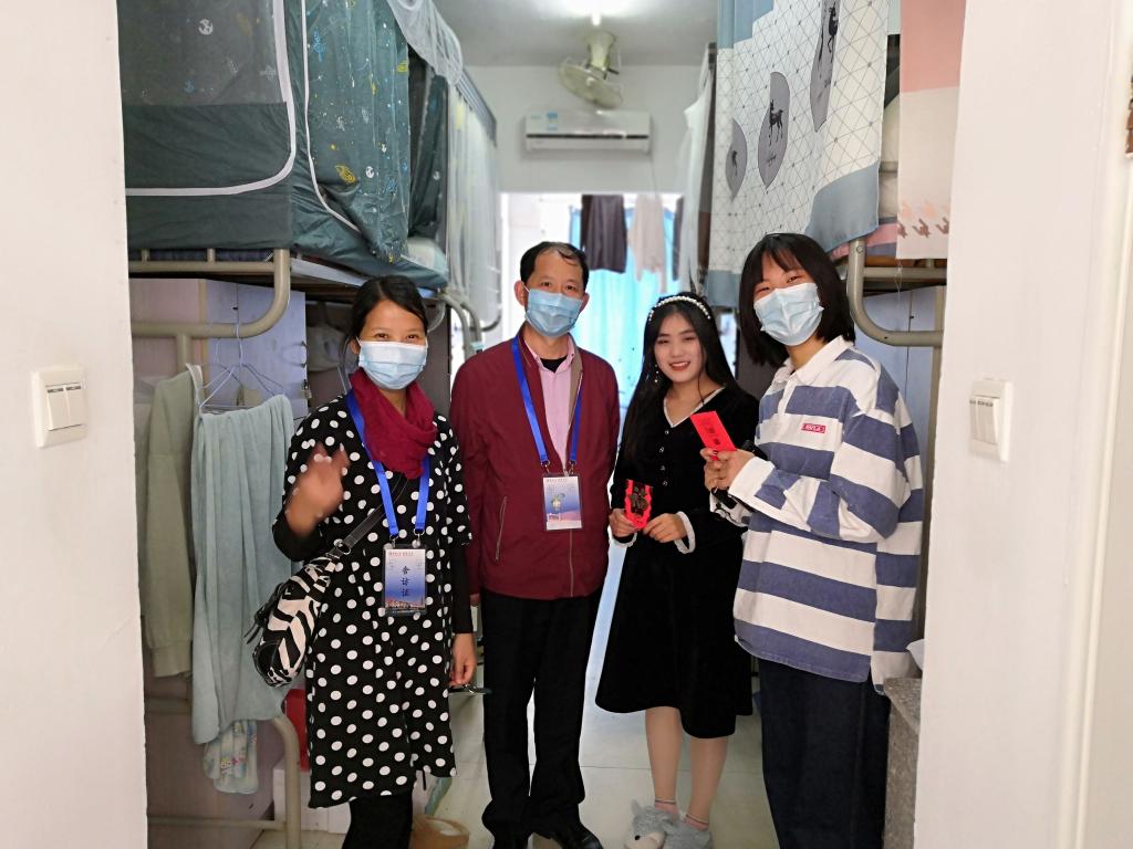 党委书记陈卫峰、副院长薛佳薇一行走访本科生宿舍,给留校过年的学生送去“红包”。走访期间,陈卫峰、薛佳薇与同学们亲切交谈,详细询问他们近期的学习、生活情况,希望同学们在校期间合理安排时间、高效学习、劳逸结合,要多与家人沟通联系,让家人放心,有任何困难随时联系学院老师。对于留校的境外生,陈卫峰关心他们的需求,鼓励他们利用假期多读书、多思考,为以后的人生之路奠定坚实的基础。同时叮嘱大家要严格遵守学校的管理要求,做好疫情防护工作。
