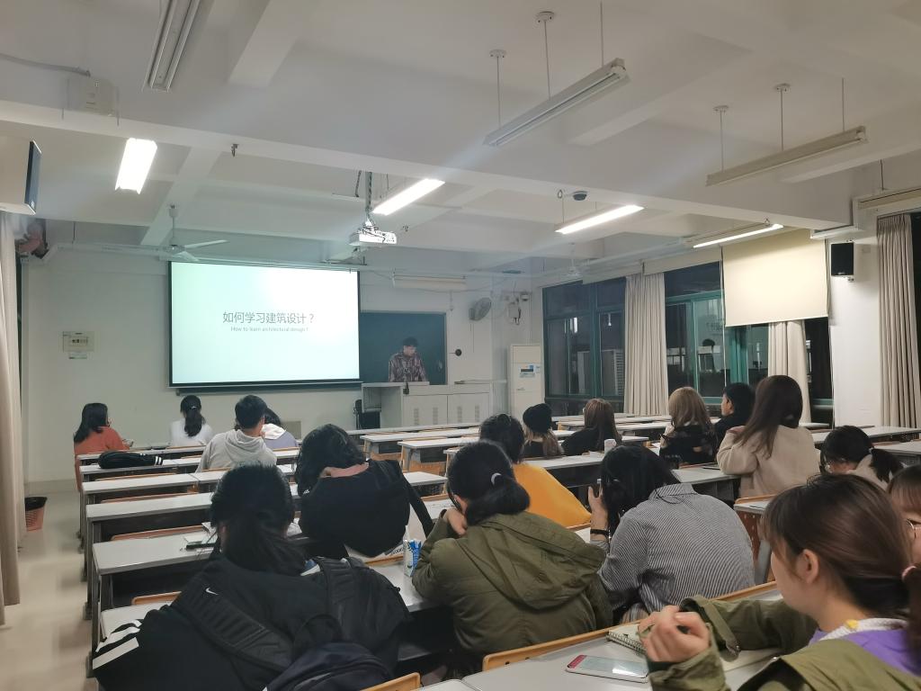 随后,建筑学研究生沈海丽学姐基于自身的学习经历,向同学们介绍了建筑学的一些专业基本功,如手绘、计算机制图,并且向同学们讲述了如何在刚入门学习专业知识时进行设计表达与积累,同学们纷纷表示获益良多。