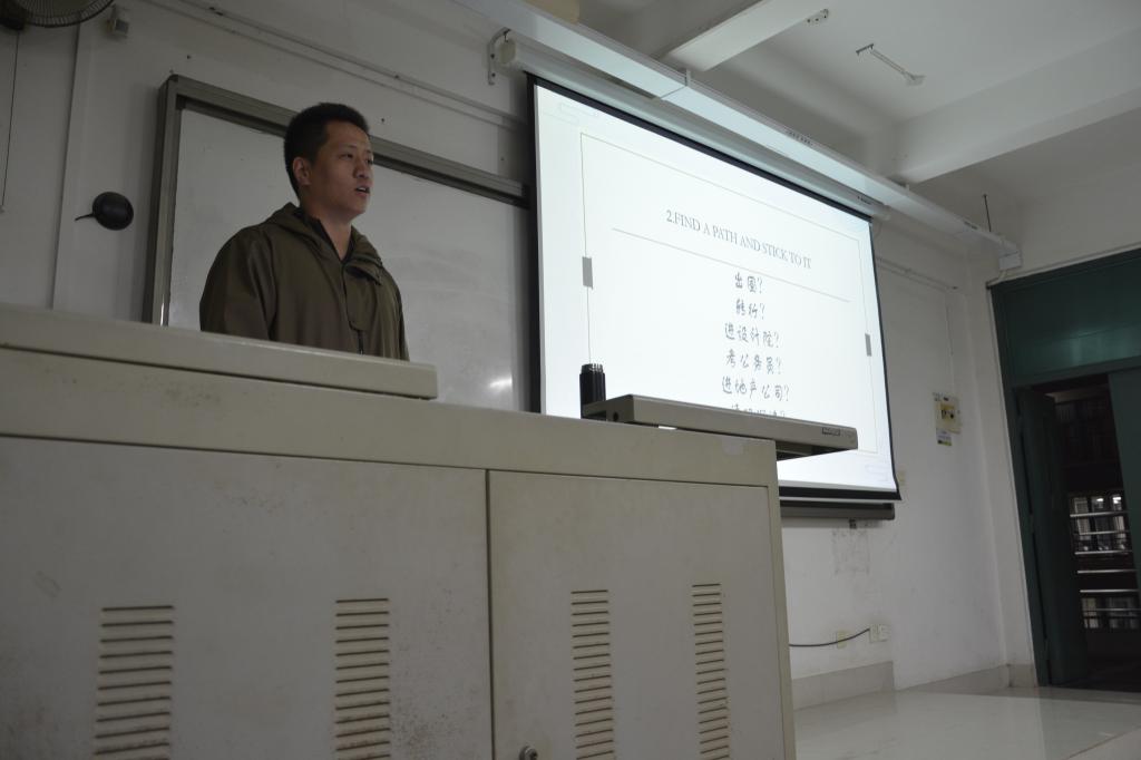 认真想清楚自己想要过的生活,如何去实现,不要随波逐流,人云亦云。最后由研究生会成员亓经纬提出“高年级时每个人都应该做些什么”这一话题。每个人是独立的个体,人生阅历不同,人生目标及对未来的想法也不尽相同,坚定地走好自己的路。亓经纬紧紧围绕着出国、进设计院、考公务员、读研深造以及个人兴趣爱好和优缺点等方面,进行了详细的讲解。