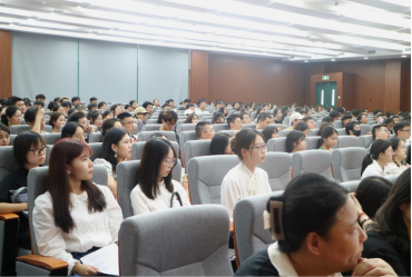 2023级研究生新生代表赵曼婷发言,华大的校训“会通中外,并育德才”不仅是一句口号,更是一种精神,是同学们应有的国际视野与处世格局。她认为在研究生学习的生涯中,应当目标明确,锲而不舍,做求索真理的孤勇者;独立思考,自主学习,做求实创新的追梦人;知行合一,坚毅笃行,做不舍寸功的实干家。