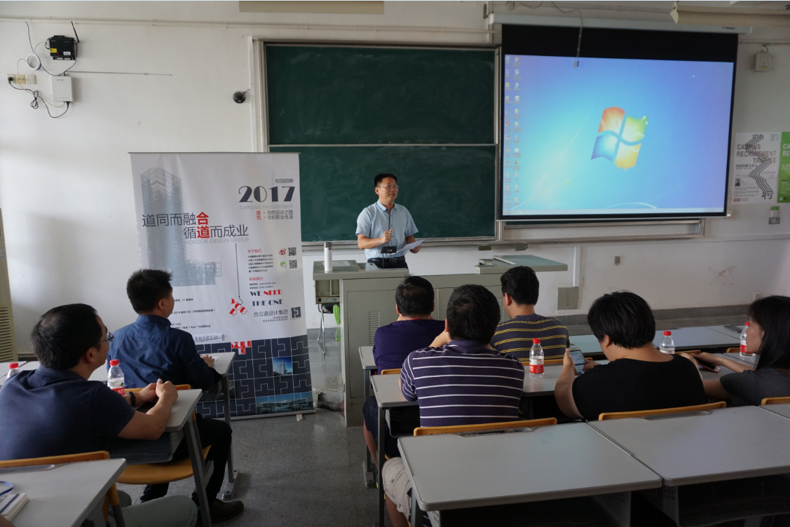 6月27日下午,建筑学院2018届毕业生实习就业大会在D4-202顺利举行,党委书记高炳亮,副院长尹培如,建筑系系主任郑妙丰,城乡规划系系主任林翔,深圳立方设计、天华设计、gad绿城、合立道集团、CCDI悉地五家公司代表出席本次会议,会议由团委书记欧海锋主持。