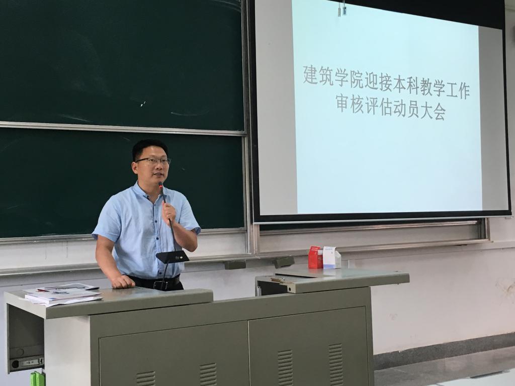 会上,院党委书记高炳亮首先传达了学校关于迎接评估的会议精神,强调了评估对学校学院、教师学生的重要性。随后,高炳亮介绍了学校、学院目前的总体情况,最后就“专家现场考察程序、考察方式、教师如何应对评估”三个内容进行了介绍。