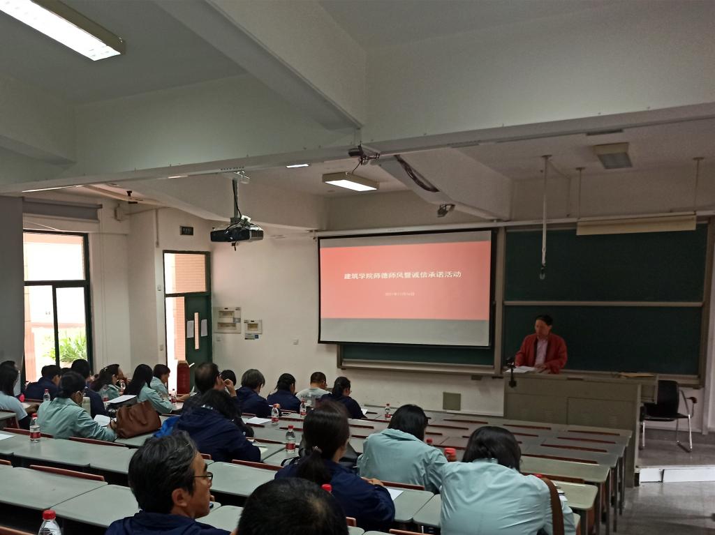 为进一步贯彻落实《中共中央国务院全面深化新时代教师队伍建设改革的实施意见》《教育部关于加强和改进新时代师德师风建设的意见》《新时代高校教师职业行为十项准则》,加强师德师风建设,推进学院师德专题教育走深走实,11月16日下午,yl23411永利集团在综合教学楼F4-101召开师德师风专题会议,并举行师德师风承诺书签订活动。党委书记陈卫峰主持大会,全体教职工参加。