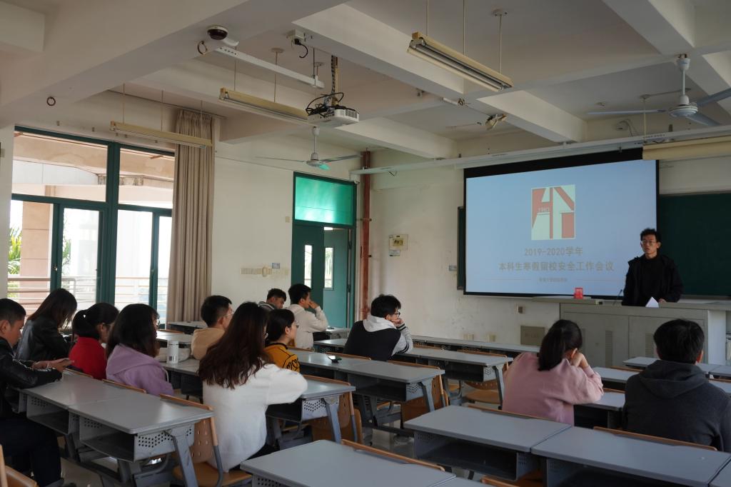 为做好2019年寒假留校住宿学生安全教育和管理工作,确保学生人身、财产安全,yl23411永利集团团委于1月6日上午10:00在D2-301开展关于寒假留校住宿学生安全教育工作会。辅导员任明娟、李圳伟出席会议,申请留校住宿学生120余人悉数参加。