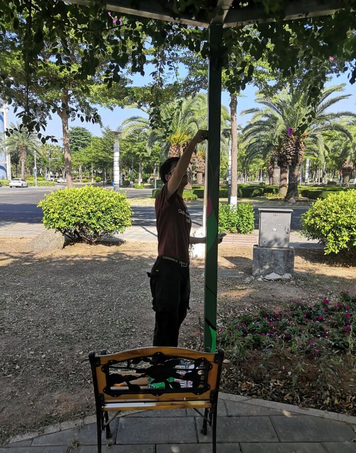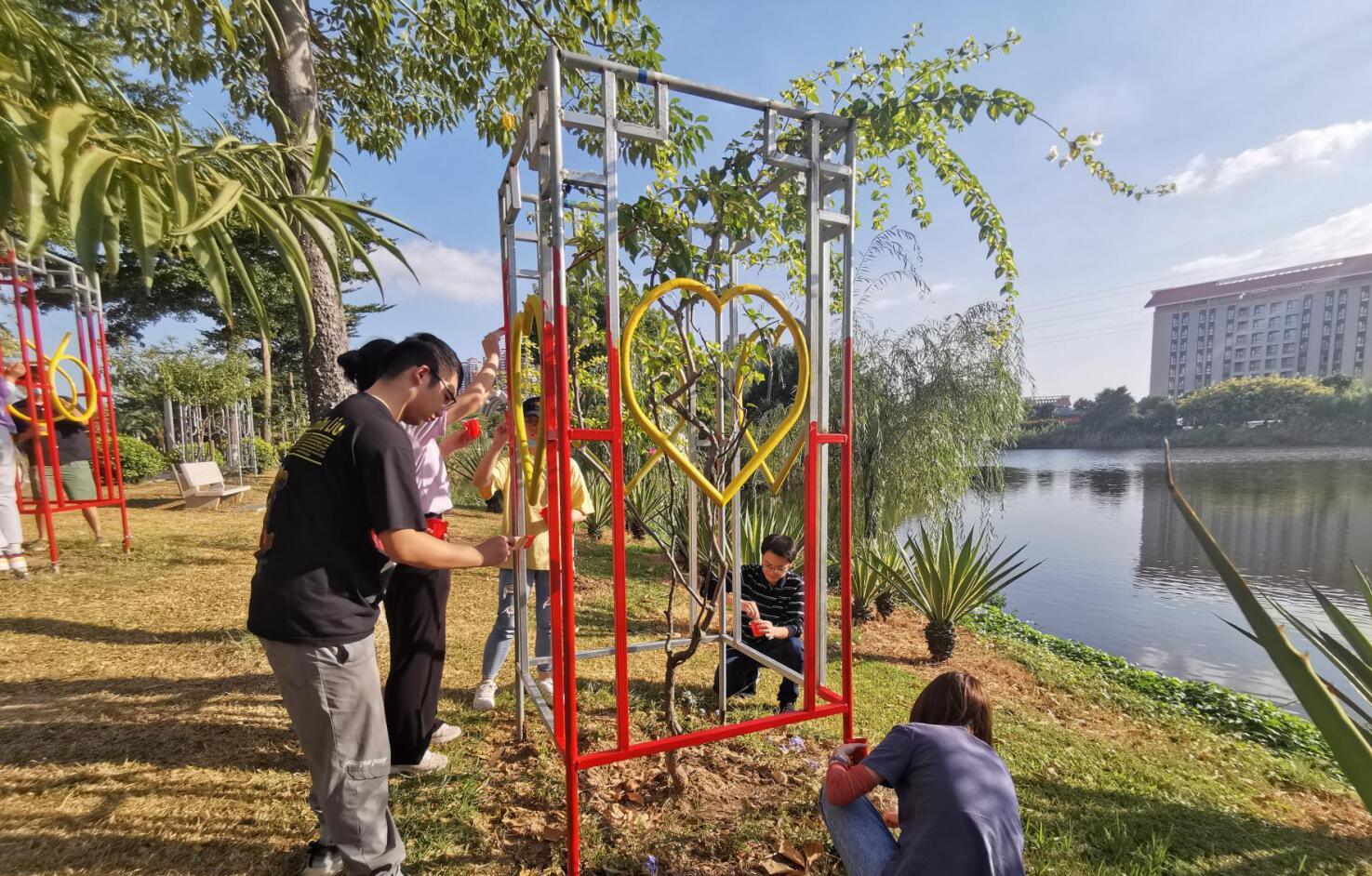 党员们利用周末和周二下午等时间,给前期设计加工好的以“HQU 60♡”为主体的景观钢架刷上油漆以及给湖边三角梅景观亭的钢架进行彩绘,方案的设计理念寄托了建筑学子对母校60周年校庆的深深祝福与美好期待,同时也表达了对永利yl23411集团的热爱与赞美。党员们迎着烈日,累计工作了近7个小时,完成了所有的刷漆和彩绘干工作。