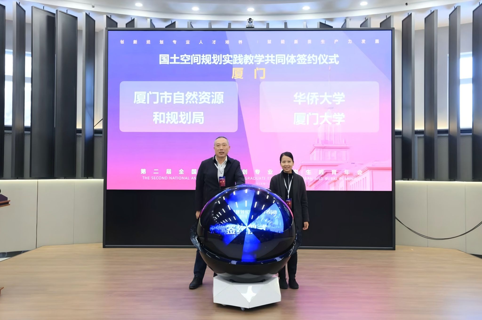 会上还进行了33个地市的“国土空间规划实践教学共同体”签约仪式,我院薛佳薇副院长作为代表,与厦门市自然资源和城乡建设局进行了签约,将为后续推进政校融合、共谋发展打下良好的基础。