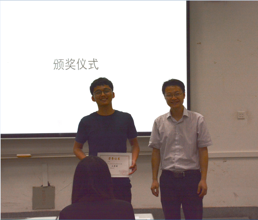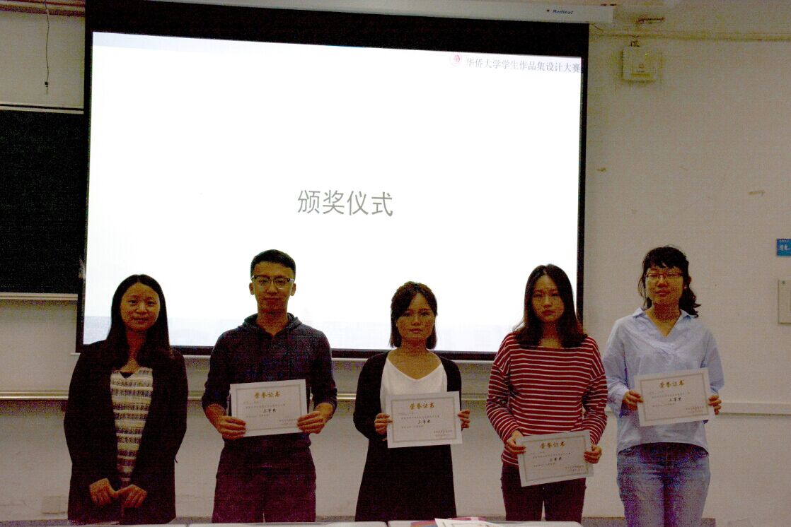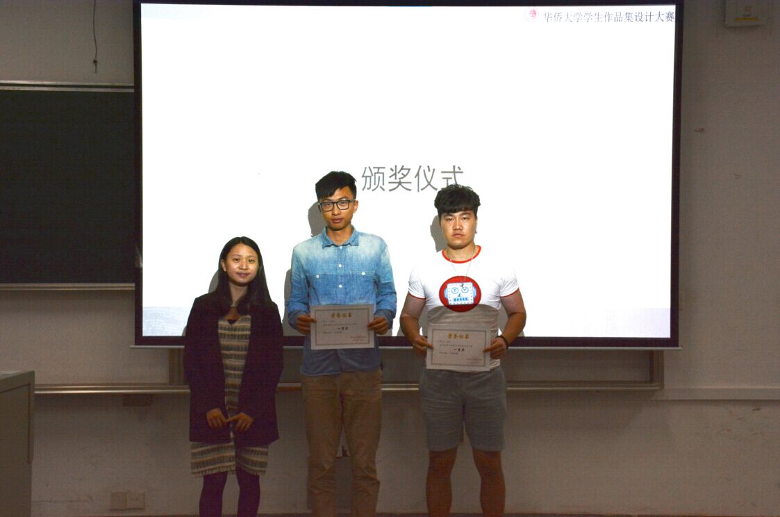 接着,谭磊和黄媖露为获奖同学颁奖。本次大赛王晓东、史榆淏同学获得一等奖,张婕、黄水力、潘海涵同学获得二等奖,杨晨、张乔、林孟蓉、杨琪、向蕾、徐婉茹、潘雪同学获得三等奖。然后,王晓东、张乔等同学在获奖后稍微平静了一下激动的内心,向同学分享了自己设计作品集过程中的困惑、思路、框架以及心得体会,给同学提供了更多可以借鉴的思路及经验。
