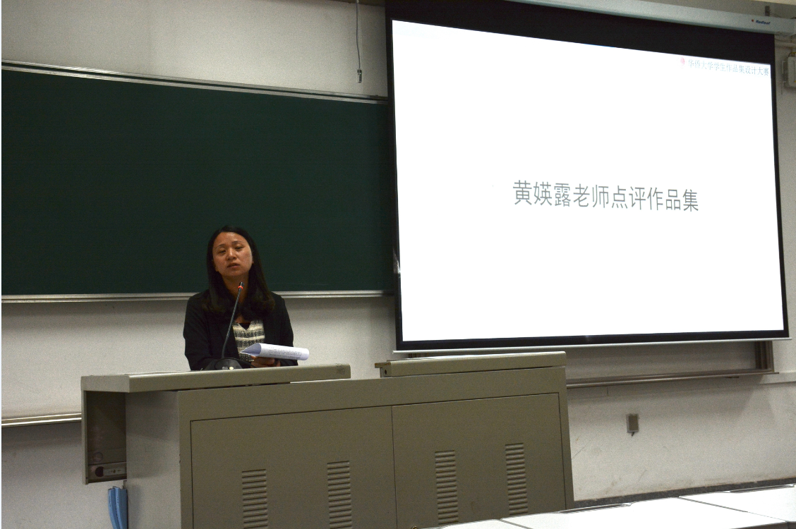 首先,黄媖露对参赛作品进行点评。通过分析参赛作品的一些共同的问题,黄媖露老师指出:“作品集应有针对性。”学生应该对招聘、考研、出国等不同的目的来进行作品集的设计。另外,明确主题、统一风格、注重细节等也能为作品集增色不少。