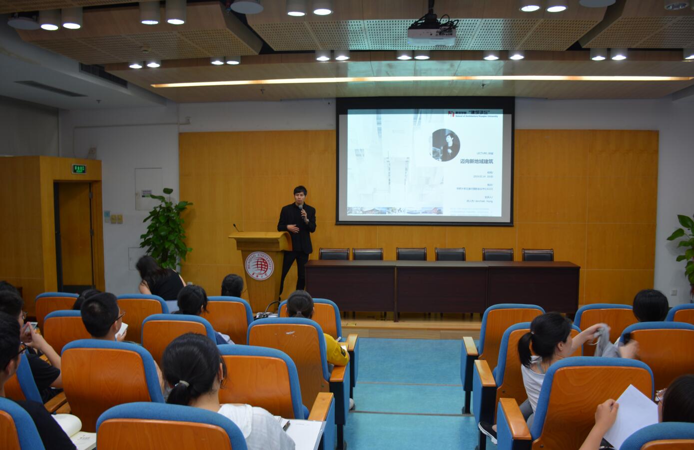 5月14日晚上7点,HAS design and research主持建筑师洪人杰先生应邀作客yl23411永利集团建筑讲坛,在王源兴国际会议中心G103带来了一场主题为“迈向新地域建筑”的学术讲座,yl23411永利集团副院长薛佳薇副教授等师生听取了讲座。