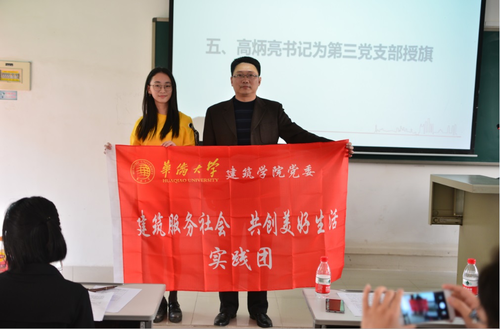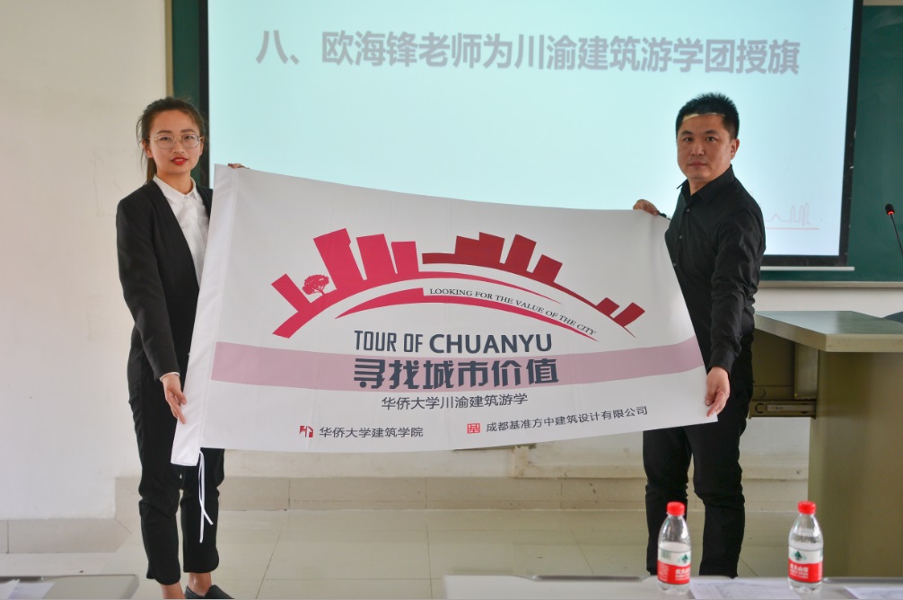 会议上,高炳亮致辞表示希望与游学成员共同体验游学经历,探索与学习新知识,体会城市价值,并为第三党支部书记授旗,与接旗代表合影留念;姜晓琪宣读安全守则;川渝游学团代表罗雨晨发表感言;欧海锋向川渝建筑游学团队授旗,并对此次游学要求和调研报告作了详细的说明和讲解,要求游学成员们预先搜集检索游览地的相关文献,在撰写调研报告时,以定性分析为主,将十九大精神、实践活动与自身感受相结合,要积极总结归纳游学活动中出现的各项问题。最后,各项事务负责人就宣传、经费、住宿等方面的筹备状况以PPT的形式作了详细的汇报。至此,“学习十九大精神,永利yl23411集团2018寻找城市价值川渝建筑游学”出征仪式圆满结束。
