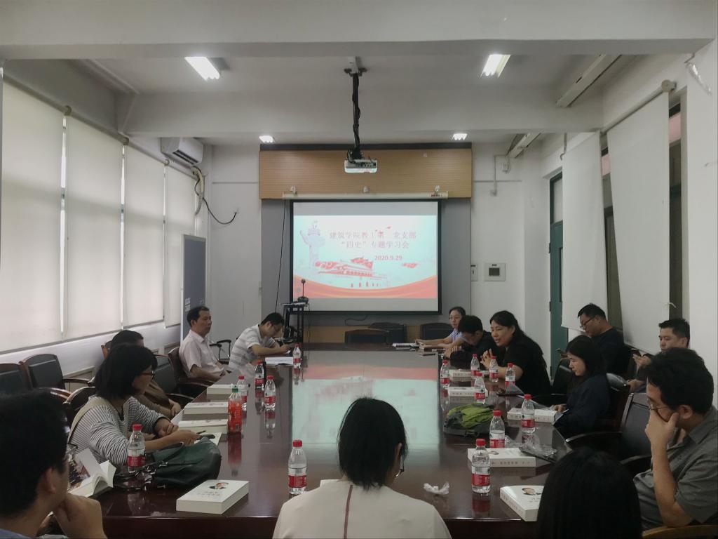 同时间在另外一个会场,党支部书记成丽主持了教工第一党支部的专题学习会。