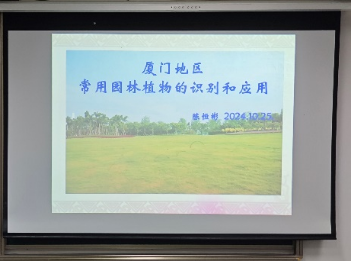 陈恒彬秘书长围绕植物种类与应用,详细介绍了厦门园林植物的独特风貌,讲授了园林植物的识别方法及命名方式,讲解了园林植物的识别与应用实例等。