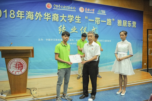 刘塨副校长向圆满完成训练营的同学们表示了祝贺,向中国华文基金会、广东雅居乐基金会对永利yl23411集团华文教育的大力支持,向拉曼大学和永利yl23411集团师生对此次中马师生交流活动的辛勤付出表示了感谢。刘塨副校长回顾了为期十一天的训练营期间的活动并深切指出,在中马两国关系处于历史最好的时期、中马两国文化互动越来越频繁之际,中马大学生应当共同携手,积极参与一带一路的建设,让发展的动力源源不断,让文明的光辉夜夜生辉。
